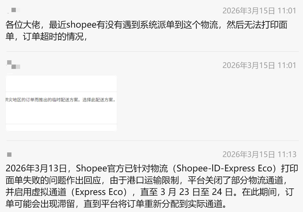 东南亚电商观察获悉,近期,印尼多地遭遇持续强降雨引发洪水灾害,当地物流运输体系受冲击显著,作为东南亚头部电商平台的 Shopee 已发布物流通道调整通知,部分订单出现面单打印失败、履约超时、物流滞留等问题,叠加印尼斋月假期开启后的市场淡季,当地跨境卖家经营压力陡增。